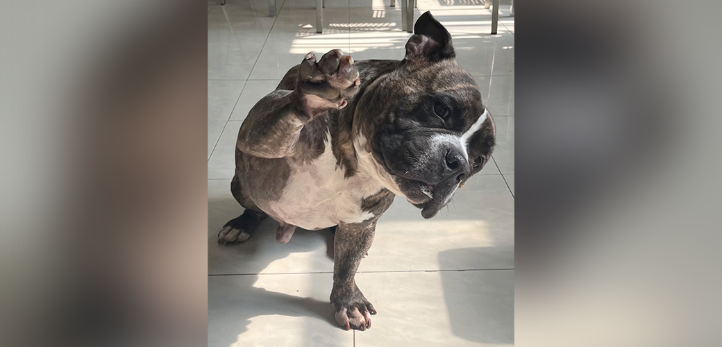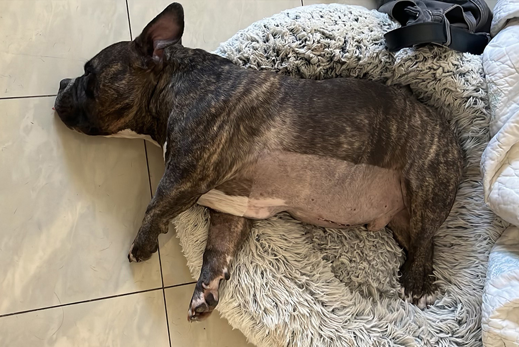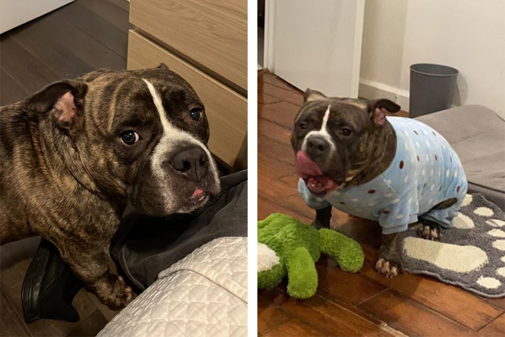 In April, when Apo, a six-year-old American bully mix, had stopped eating and started vomiting, his pet parents, Oscar and Claudia, became concerned.