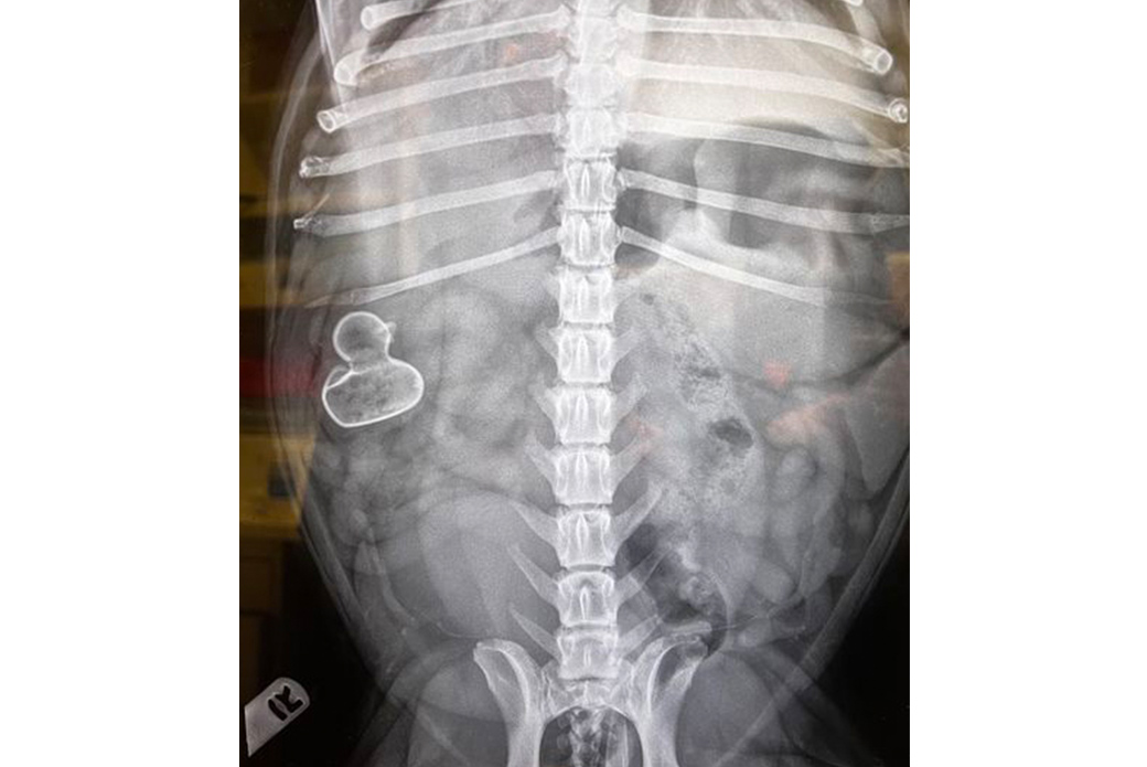 The team performed an X-ray of Apo’s abdomen, and the results were unmistakable: A rubber duck was lodged in Apo’s small intestine.