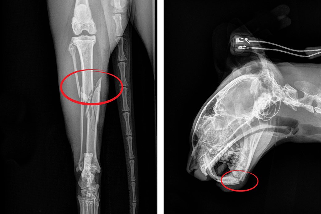 “He had a right hind leg fracture—both tibia and fibula—and a broken jaw and broken teeth, likely due to falling from a high-rise building,” says Dr. Bliss. “He was in so much pain and distress and he was so fearful—hissing, growling and lunging. But I thought, ‘If this were my cat, and he had this horrible accident, I would want him back.’ He was in so much pain we could hardly handle him.”