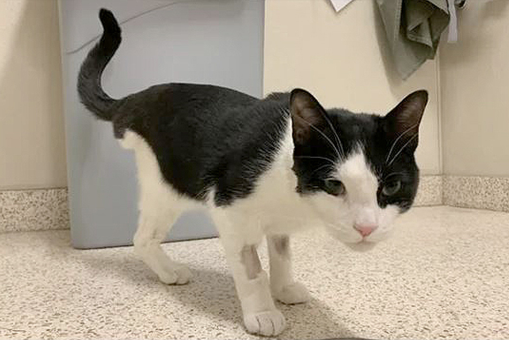 Just before Christmas in 2022, a severely injured black-and-white cat named Oslo was discovered in Brooklyn by a Good Samaritan and taken to a local veterinarian.