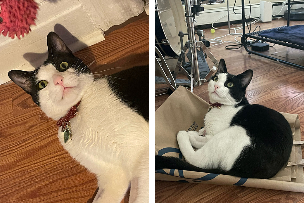 “He jumped right out of the carrier, and by the second day, he had the run of the house,” says Ana. “He was quiet at first but is much more vocal now. His meows are like our built-in alarm clock. He gets the zoomies a lot.”
