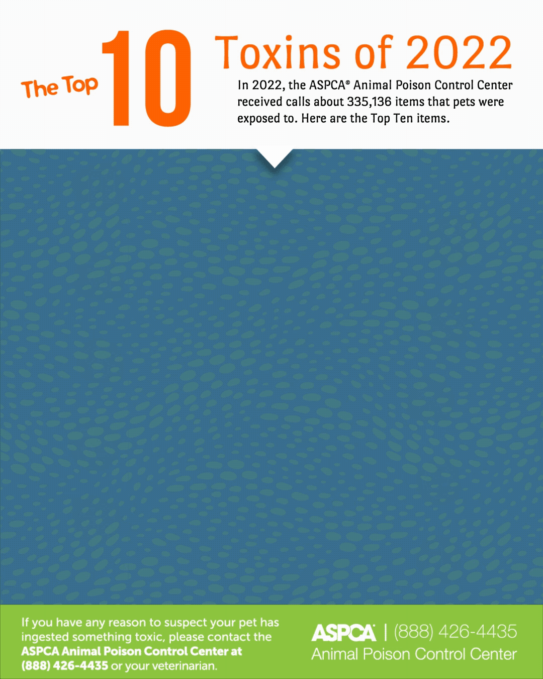 At the end of each year, the ASPCA Animal Poison Control Center (APCC) creates a list of the top toxins most commonly reported that year. In 2022 alone, APCC helped hundreds of thousands of animals, providing lifesaving information and easy-to-use safety guides to their pet parents. This week is National Poison Prevention Week which makes this the perfect time to share our top 10 pet toxins of 2022. Keep your pets safe, happy and healthy by watching out for these hazards!