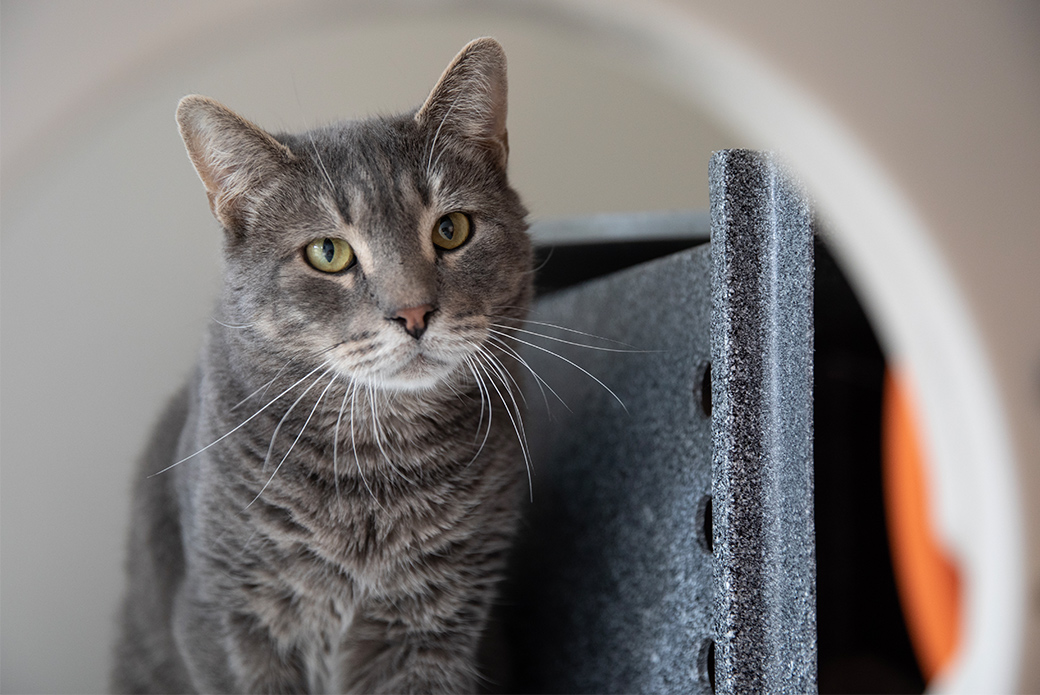 Queen of the castle and conqueror of our hearts, Pippa is sure to steal the spotlight wherever she goes! Sweet, curious Pippa spends her day birdwatching, grooming herself in the tub and playing with wand toys and toy mice. Pippa lets out little meows to let you know she’s looking for chin scratches and body pets—she’ll even roll onto her back to ask for more. Want to take this ray of sunshine home? Check out her profile to complete an application!